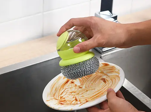 Губка-щітка для посуду дозатором рідини для мила, AND-14-20 — зручний аксесуар, який полегшує процес миття посуду. Комбінуючи ефективну губку та зручну щітку з інтегрованим дозатором, вона забезпечує швидке та гігієнічне миття. Перетворіть моменти прибирання на задоволення з губкою-щіткою та дозатором ідеальними помічниками на вашій кухні.